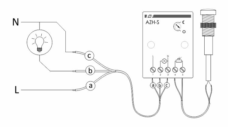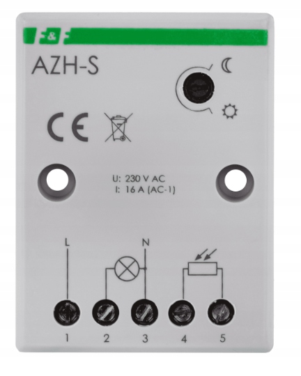 Sondę zewnętrzną włącznika zmierzchowego umieścić w miejscu o stałym dostępie naturalnego światła dziennego, które zmianami swej intensywności będzie powodować załączanie i wyłączanie oświetlenia. Pora załączenia oświetlenia może być ustawiona przez użytkownika potencjometrem. Obrót w stronę „księżyca” – załączy później, obrót w stronę „słoneczka” – załączy wcześniej. Włącznik zmierzchowy AZH-S posiada układ opóźniający załączenie i wyłączenie oświetlenia, niwelując w ten sposób wpływ zakłóceń (np. wyładowań atmosferycznych) na pracę automatu.