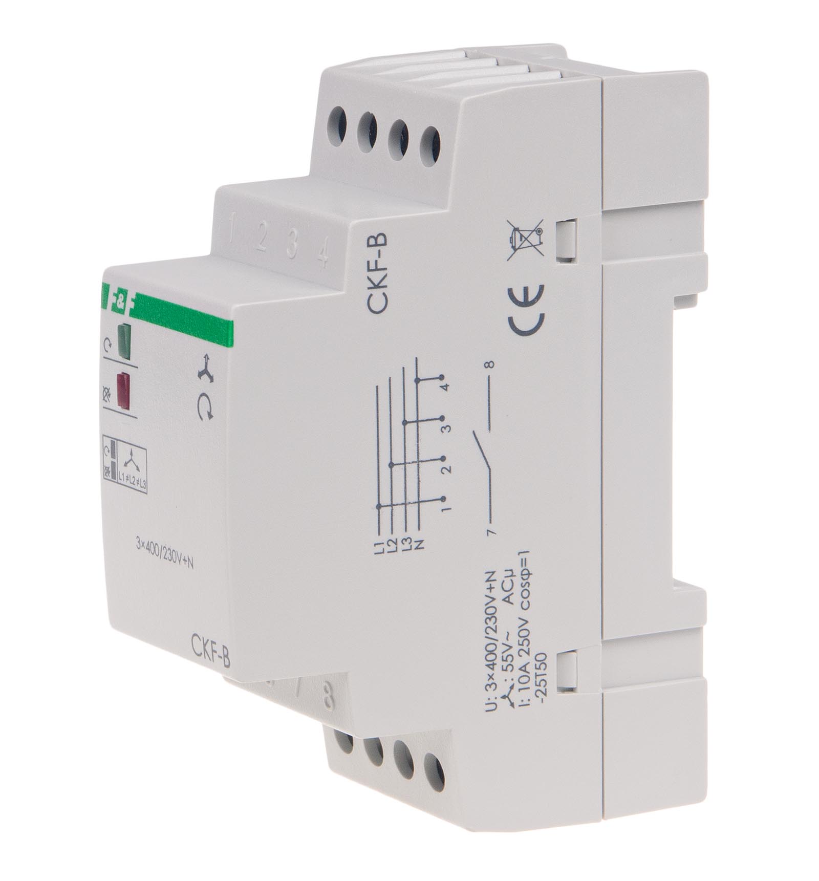 Czujnik kolejności CKF-B i zaniku faz, montaż na szynie DIN