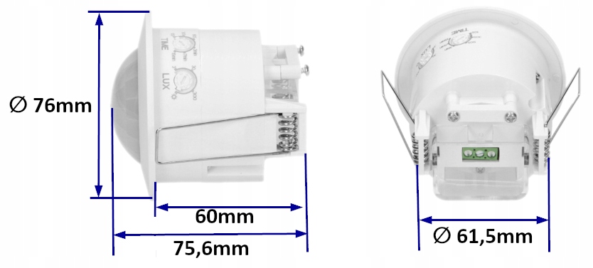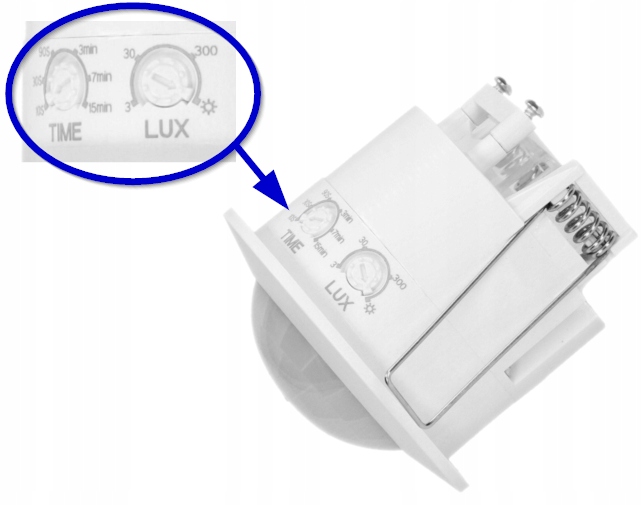 - regulacja: czasu świecenia (TIME) i czułości natężenia światła (LUX)