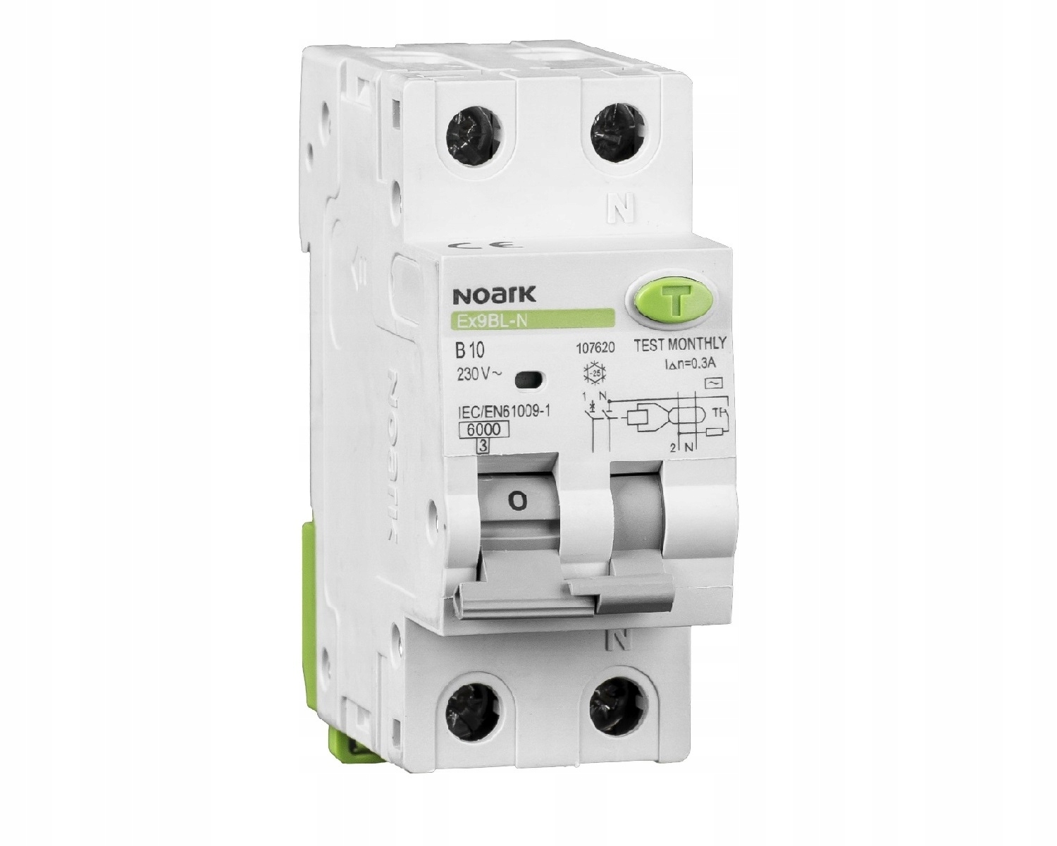 WYŁĄCZNIK RÓŻNICOWO-NADPRĄDOWY B10A 1P+N 6kA 30mA AC 230V 107620 NOARK