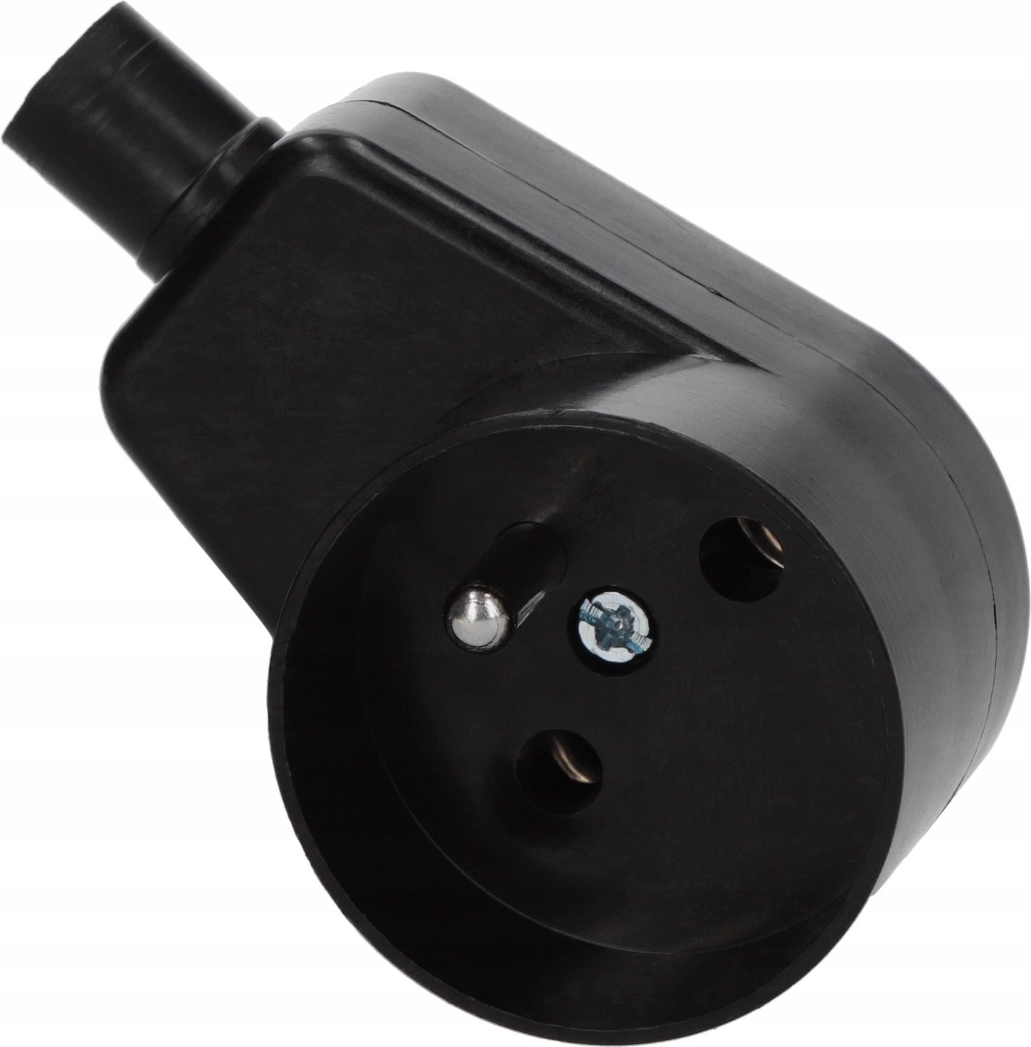 Gniazdo przedłużacza pojedyncze, kątowe z uziemieniem w kolorze czarnym.