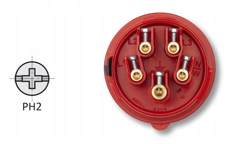 - Napięcie zgodnie z EN 60309-2: 400 V (50+60 Hz) czerwone