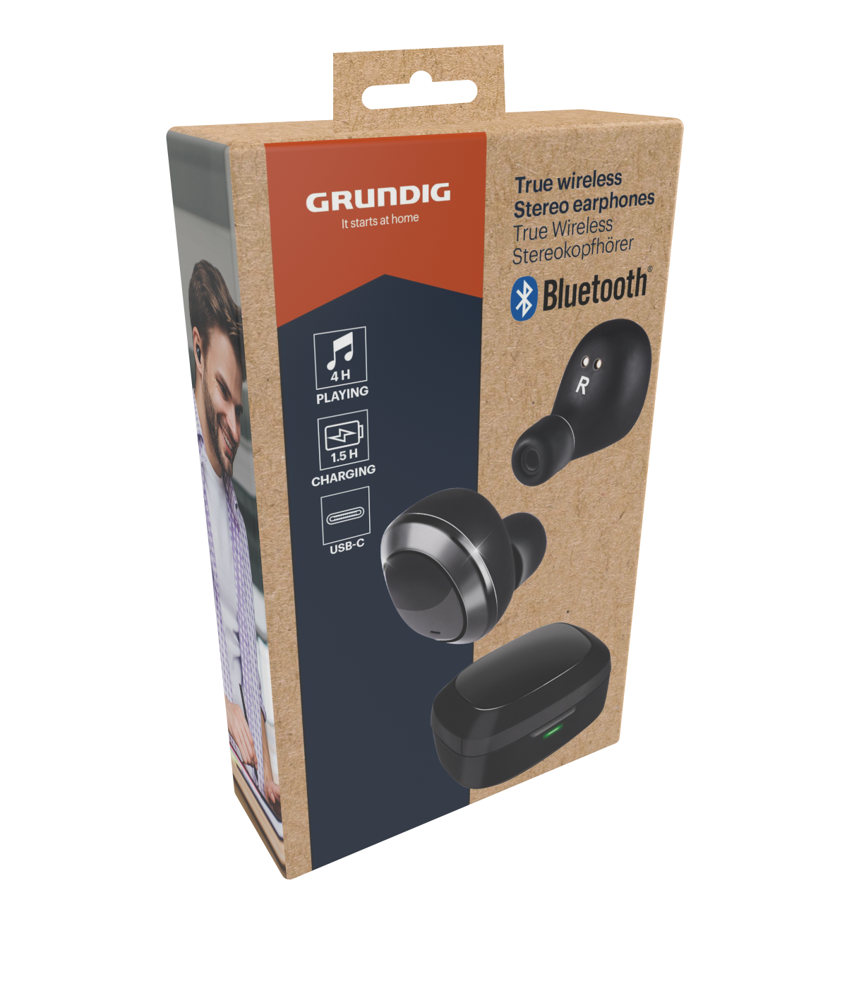Słuchawki bezprzewodowe dokanałowe Bluetooth TWS 450mAh USB-C czarn GRUNDIG
