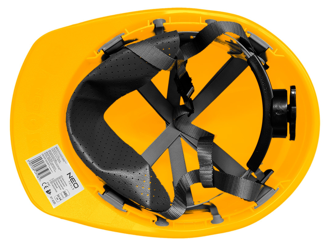⚡⚡⚡Hełm przemysłowy z paskiem podbródkowym, żółty 97-220 marki ⚒️ NEO⚡⚡⚡ to zapewniona ochrona głowy oraz komfort użytkowania.