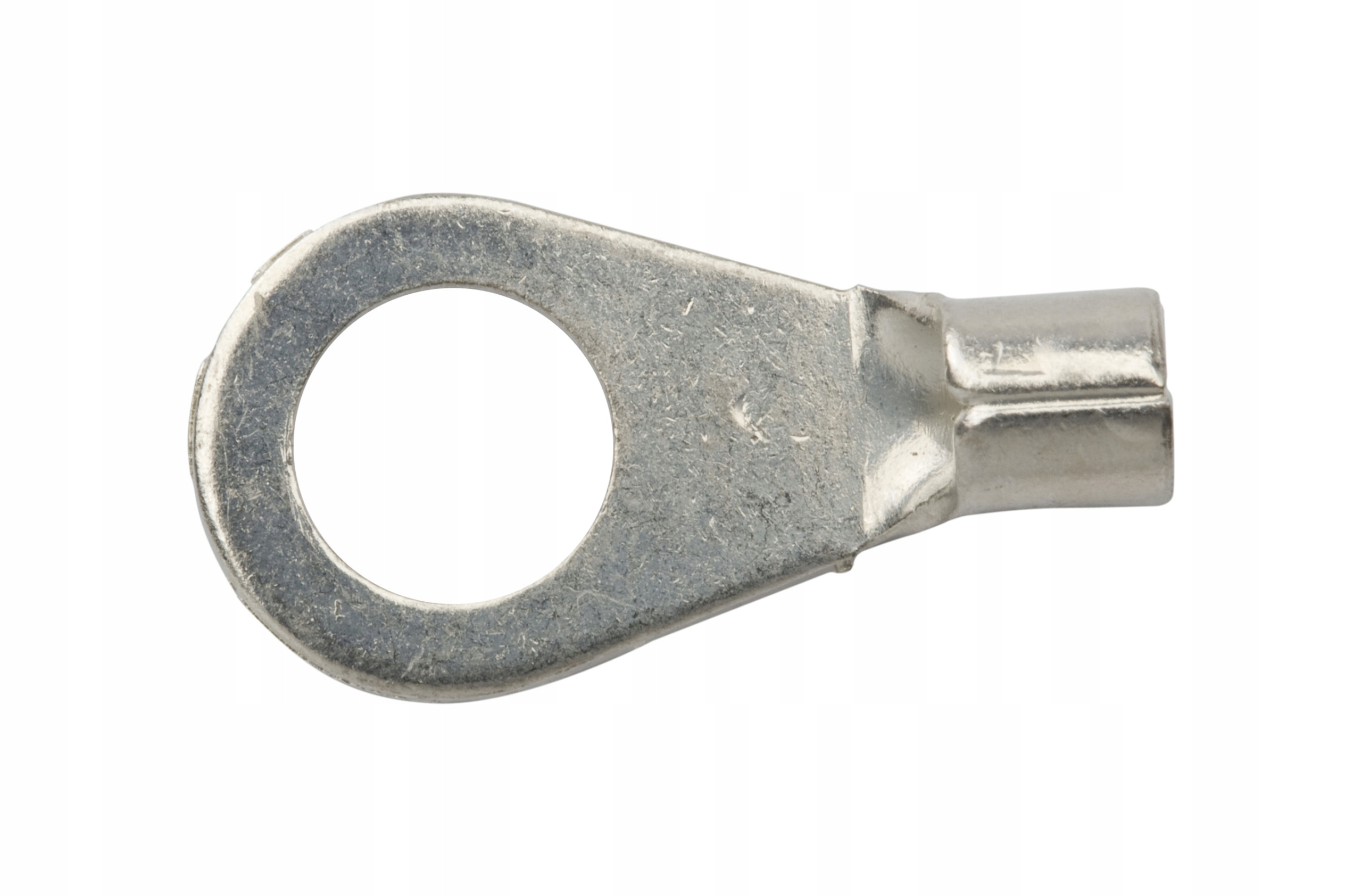 Koncowka oczkowa bez izolacji, ktora sluzy do zakanczania przewodow i laczenia ich z kolejnymi czesciami instalacji. Zamocowanie koncowki na kablu odbywa sie poprzez jej zacisniecie za pomoca narzedzia zwanego praska. Calosc zapewnia wytrzymalosc i jakosc polaczenia. Koncowka oczkowa jest wykonana z miedzi pokrytej cyna.