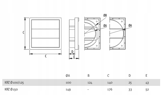 - Dodatkowe informacje: Żaluzja grawitacyjna sama otwiera się pod wpływem przepływu powietrza
