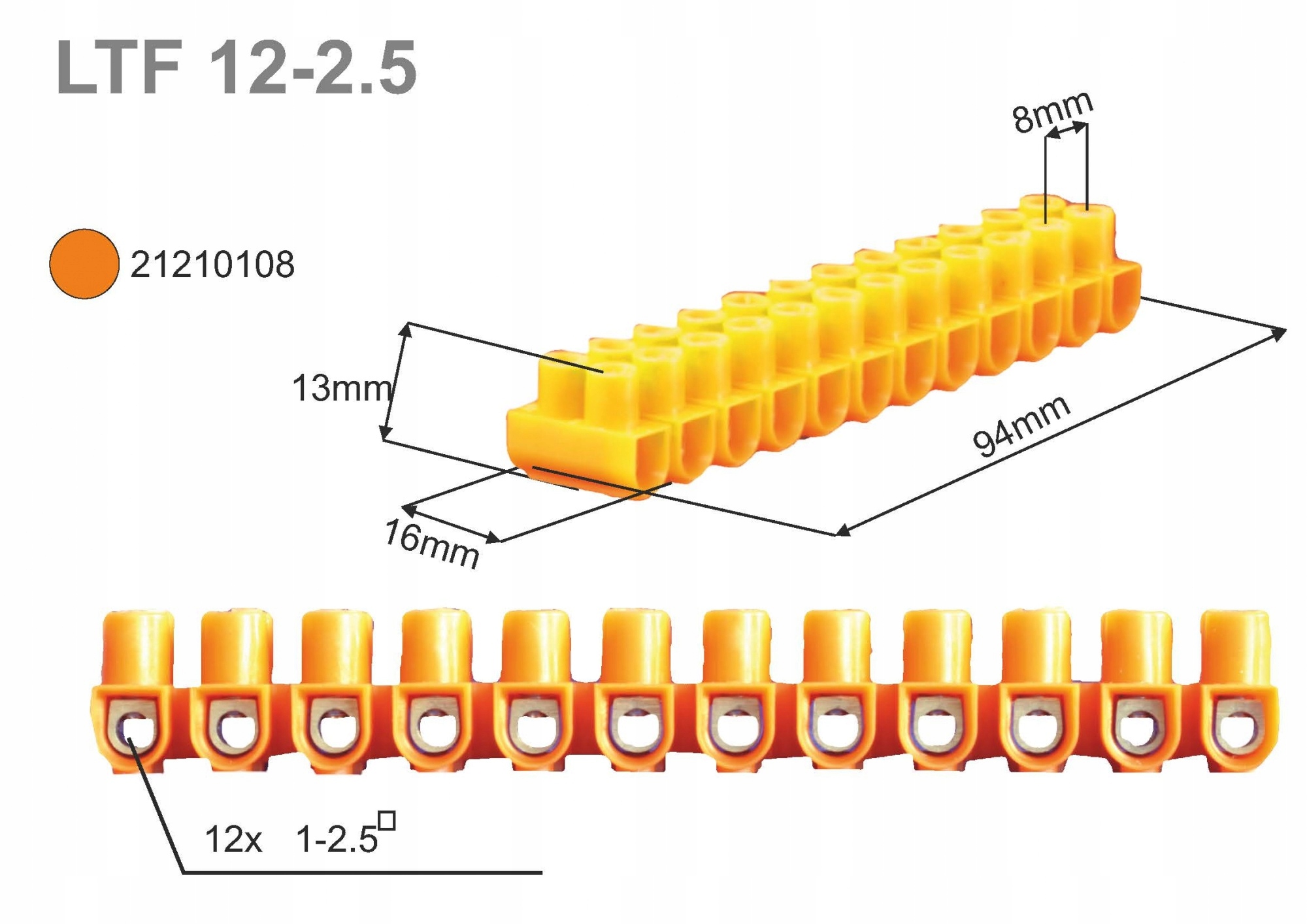 Listwa zaciskowa gwintowa 12-torowa 2.5mm2 pomarańczowa LTF 12-2.5 21210108