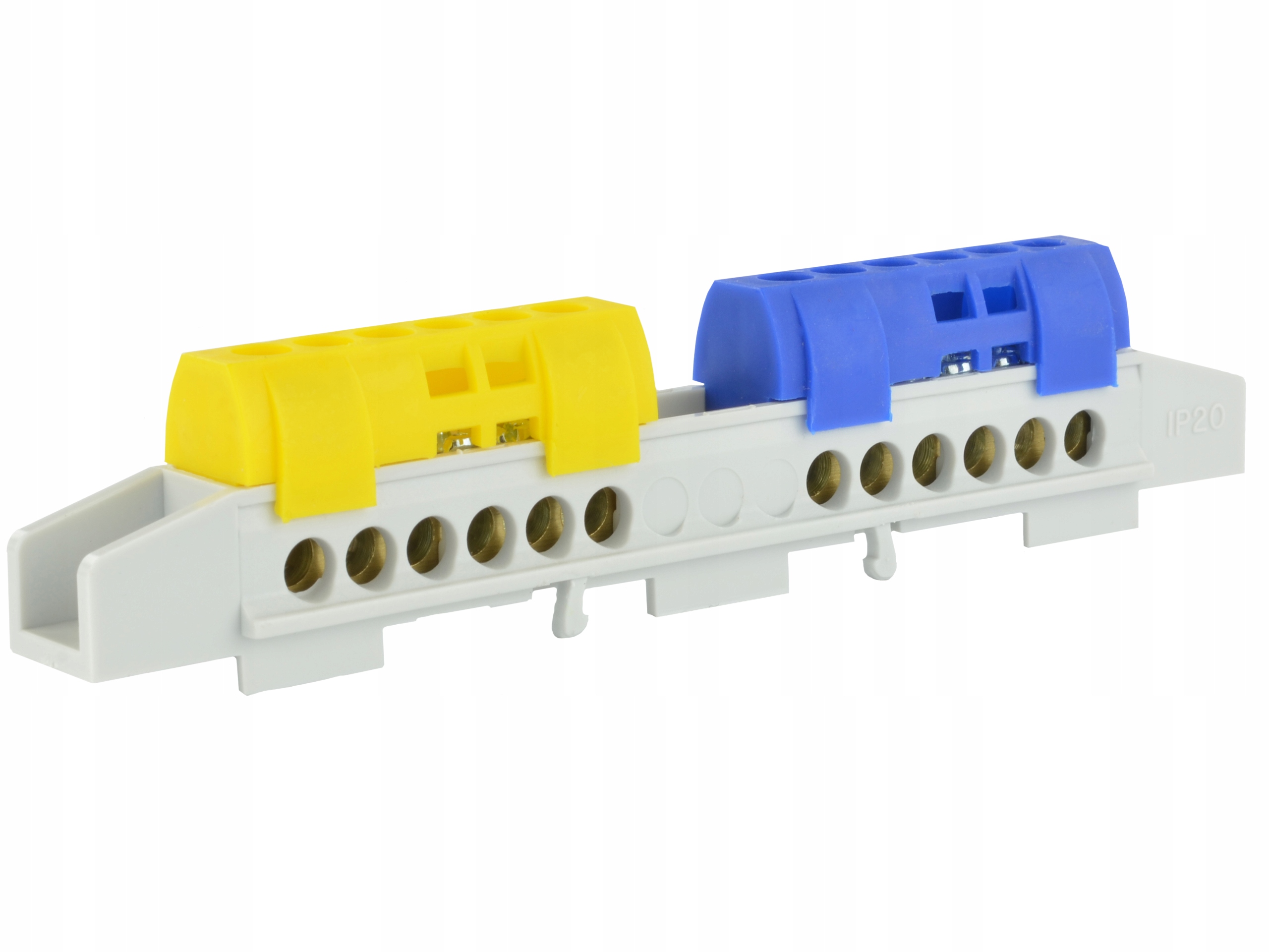 Listwa zaciskowa na szynę 2×6-torowa dzielona niebieska/żółta TH35 IP20 E.4176