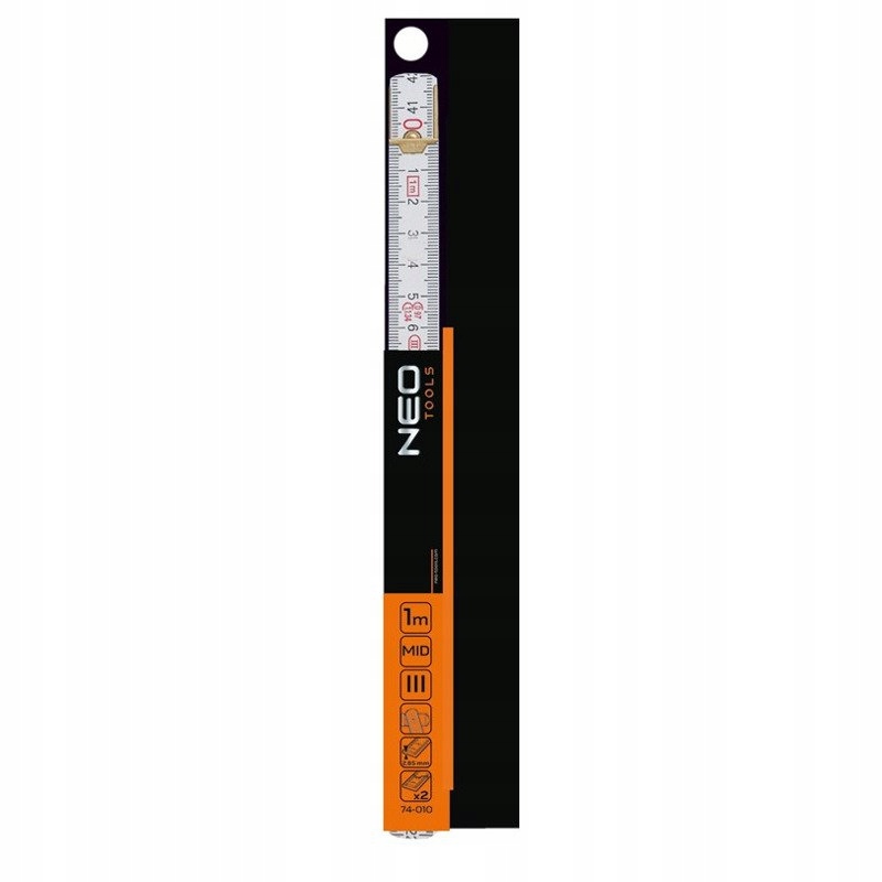 Miara składana drewniana NEO (nr ref. 74-020) o długości 2 m i grubości członu 2,85 mm. Wykonana z wysokiej jakości drewna bukowego, posiada obustronną podziałkę. Wykonana w III klasie dokładności pomiaru. Podwójne lakierowanie zabezpiecza przed ścieraniem, wilgocią oraz działaniem promieni słonecznych. Zastosowanie dwóch kolorów ułatwia odczytywanie pomiaru. Gwarantem niezawodności jest wykonanie zgodne z unijną dyrektywą o przyrządach pomiarowych MID. Marka NEO spełnia oczekiwania profesjonalistów.