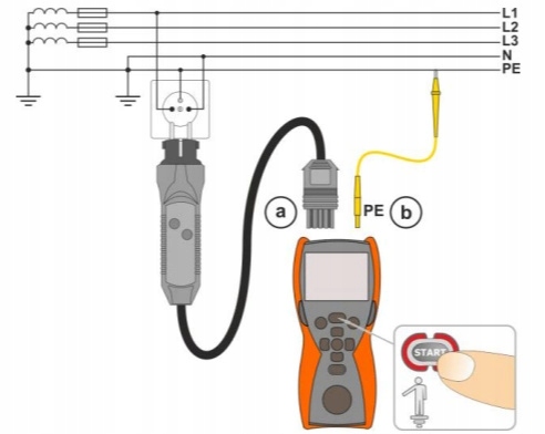 ? UWAGA Po stwierdzeniu obecności niebezpiecznego napięcia na przewodzie ochronnym PE należy natychmiast przerwać pomiary i usunąć błąd w instalacji.