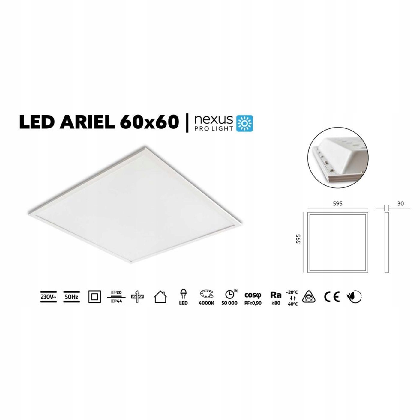 Panel LED ARIEL biały 40W 4000K 4400lm 60×60 IP44 02NSAL40NB Kobi
