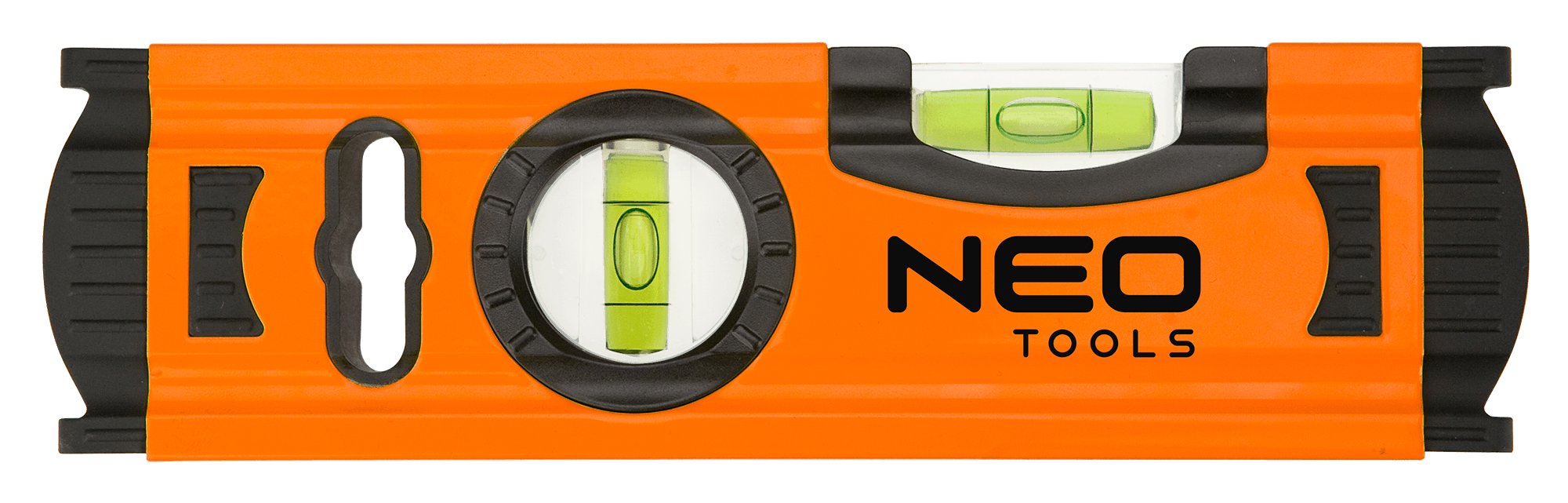 Poziomnica aluminiowa NEO o dokładności pomiaru 0.5 mm/m. Korpus wykonany z wytrzymałego stopu aluminium. Posiada 2 libelle. Grubość ścianek profilu wynosi 1.3 mm.
