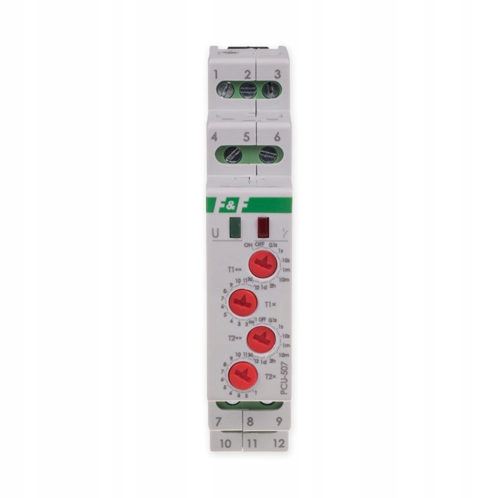 Przekaźnik czasowy z nastawą dwóch niezależnych czasów t1 i t2 (czasu pracy i czasu przerwy)