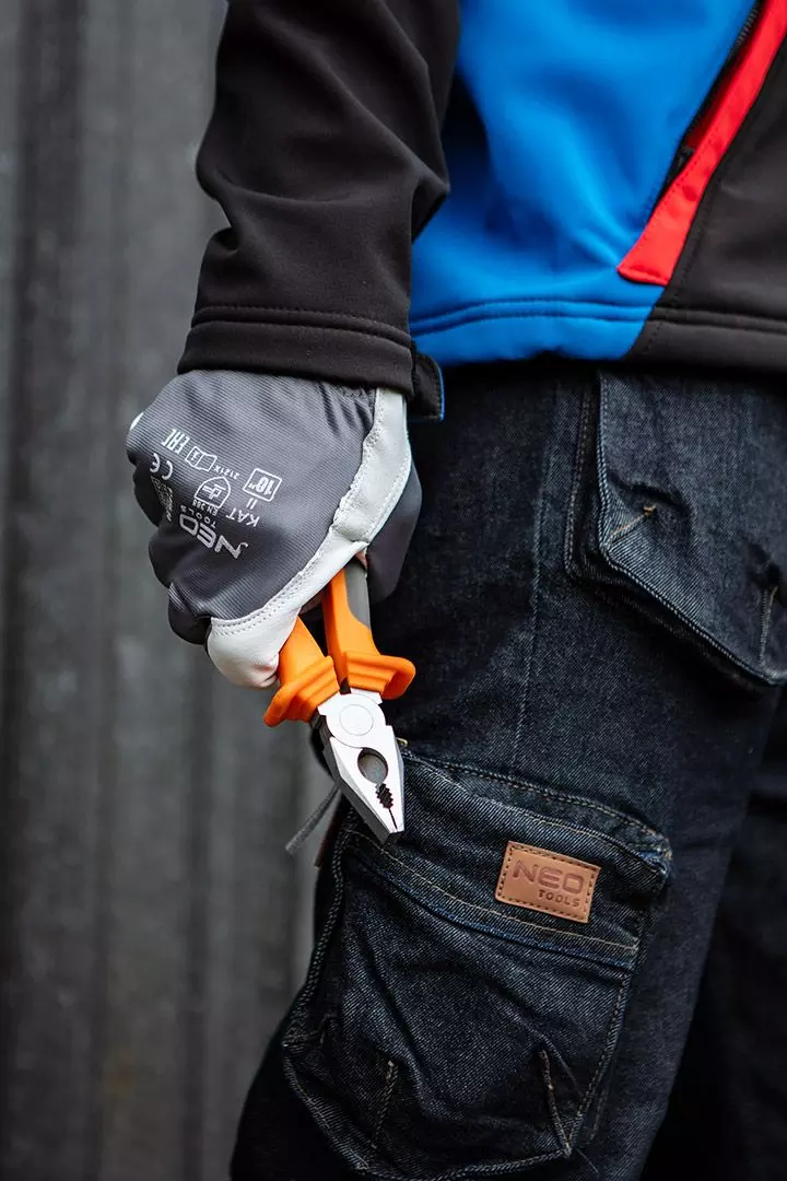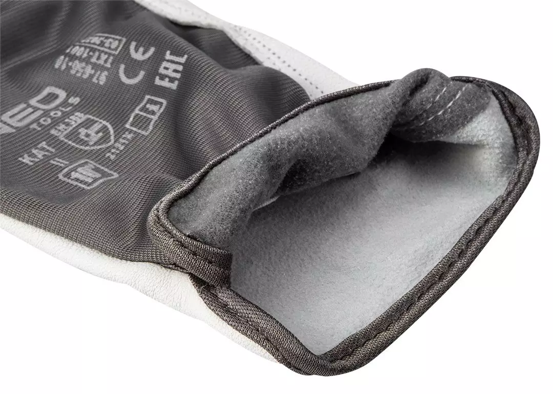 Rękawice robocze NEO (nr ref. 97-656-10) zapewniają ochronę dłoni przed brudem, zadrapaniami i szkodliwymi warunkami. Część chwytna rękawic jest wykonana ze skóry koziej, a mankiet jest marszczony. Dostępne w rozmiarach: 8”, 9”, 10”.