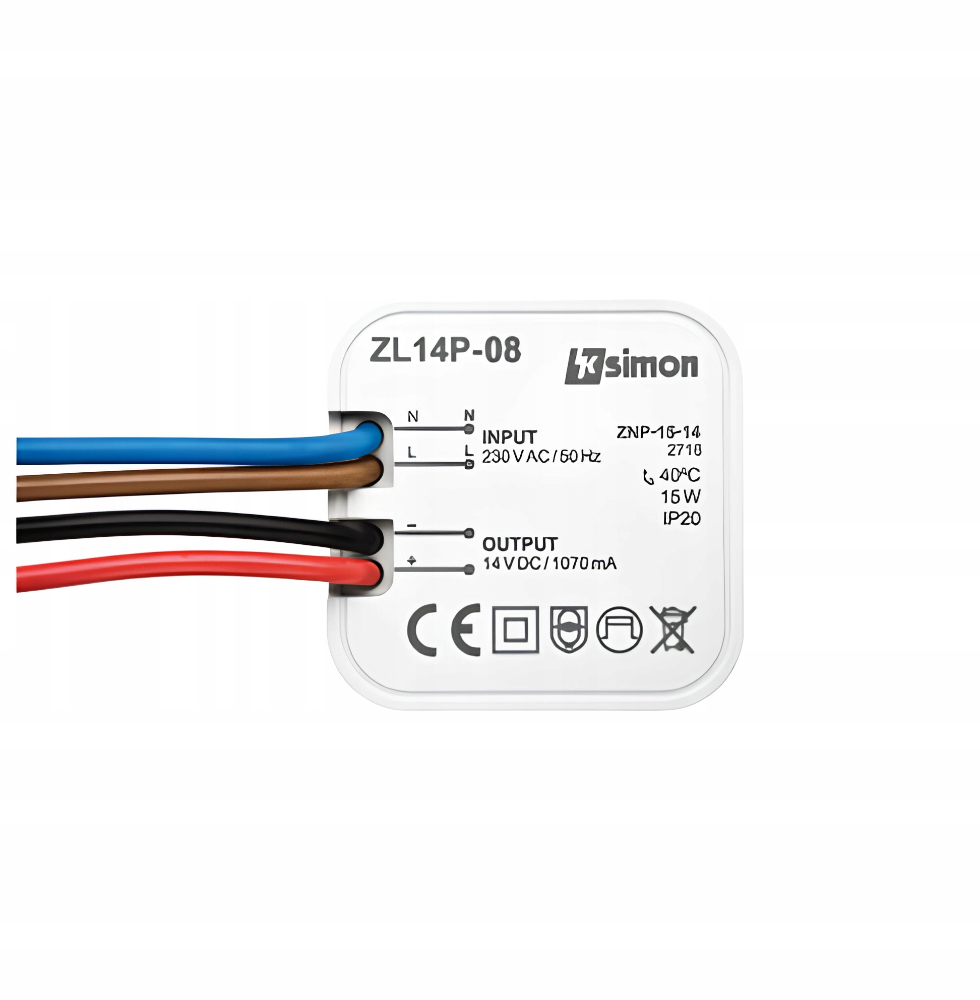 SIMON 54 Zasilacz LED dopuszkowy 14V, DC, 8W ZL14P-08