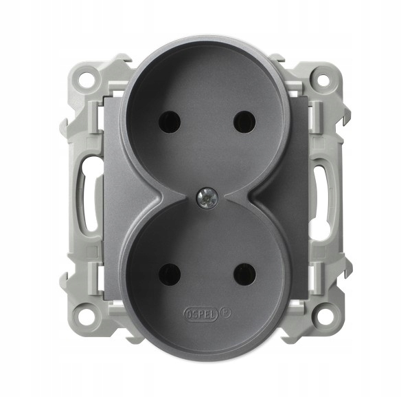 Gniazdo wtyczkowe Ospel Szafir GP-2ZR/m/70 podwójne bez uziemienia szary mat