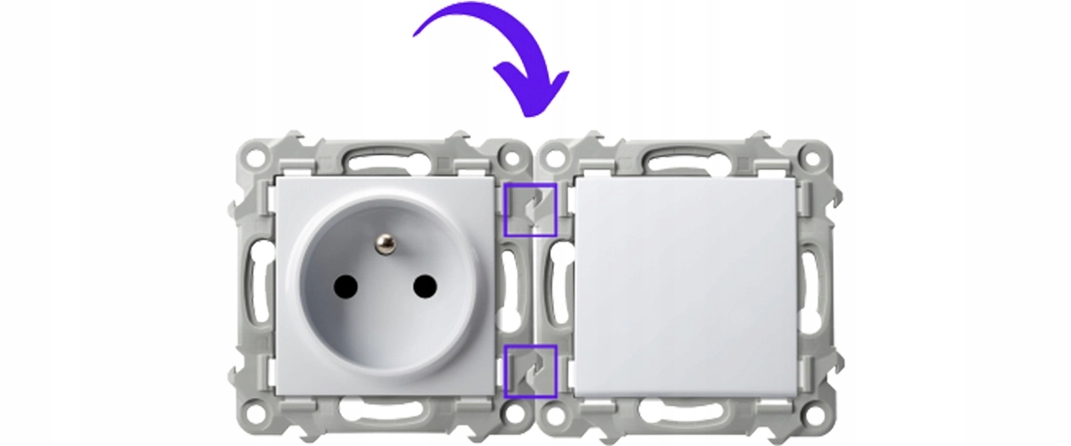 Kolejną nowością zastosowaną w gniazdach pojedycznych z uziemieniem i gniazdach specjalistycznych jest montaż pokrywy zewnętrznej za pomocą precyzyjnych zaczepów „na klik”.
