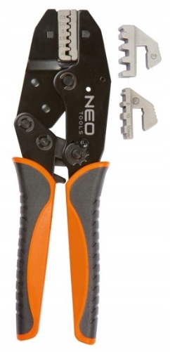 Szczypce do zaciskania końcówek tulejkowych o długości 220 mm. Z wymiennymi głowicami do zaciskania końcówek nieizolowanych. Głowice wykonane z wytrzymałej stali chromowo-molibdenowej o twardości 45 HRC.
