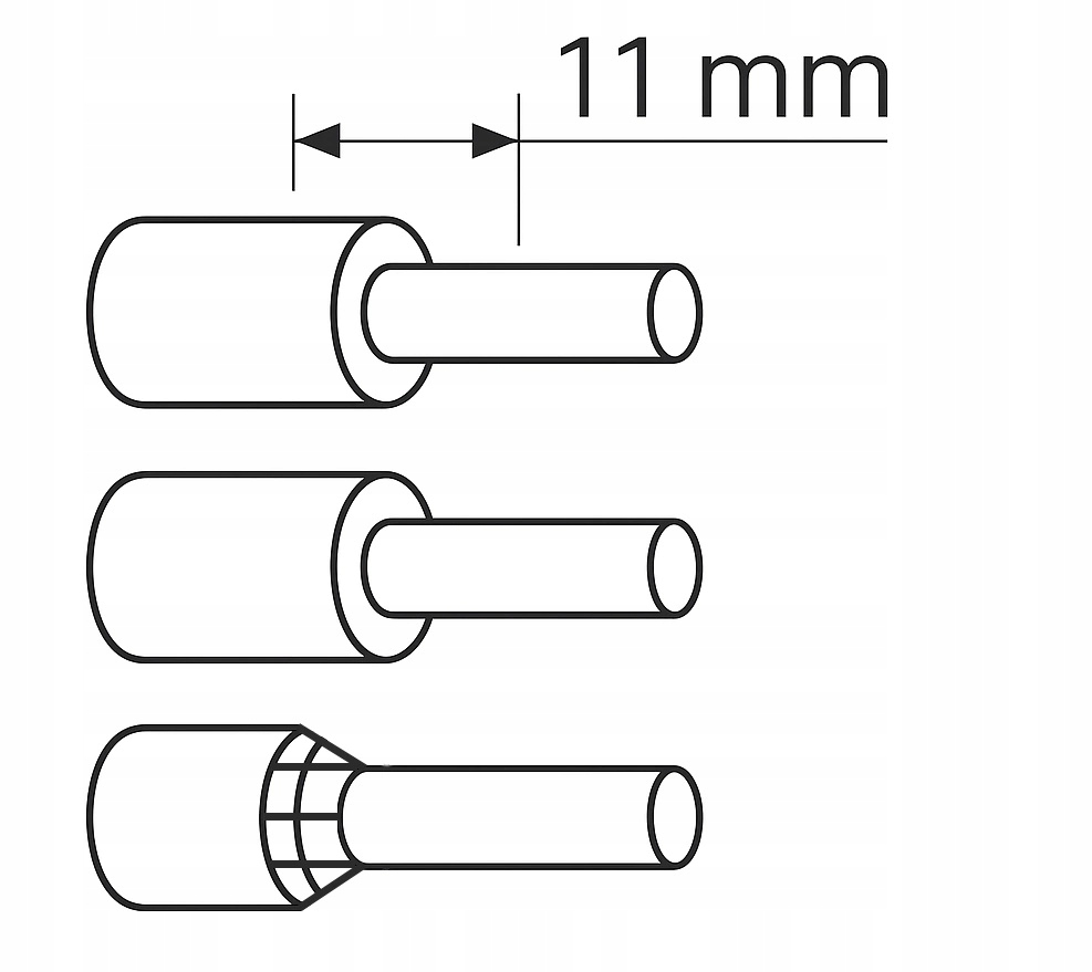 Odizoluj przewód na długość 11 mm, zwolnij zacisk przez uniesienie blokady