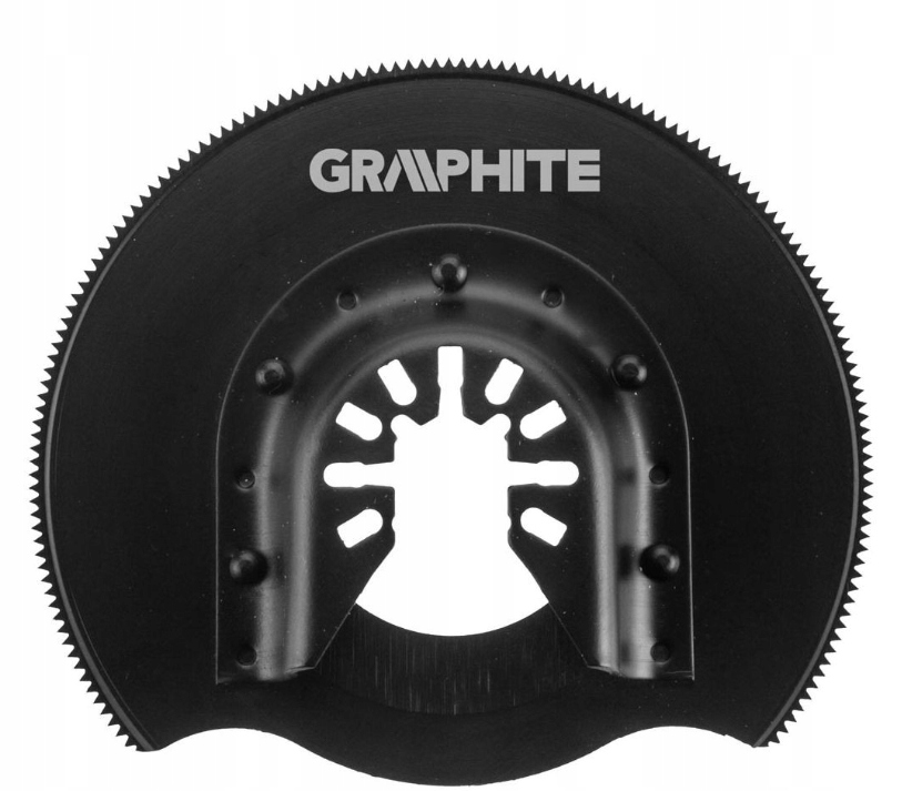 Tarcza półokrągła GRAPHITE wykonany ze stali szybkotnącej. Pozwala na cięcie elementów metalowych przy pomocy multinarzędzia GRAPHITE