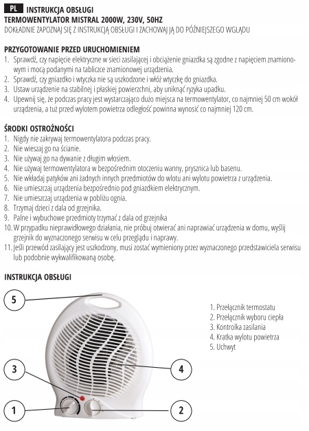 - termowentylator z 3 stopniami regulacji nawiewu: zimny, ciepły i gorący,