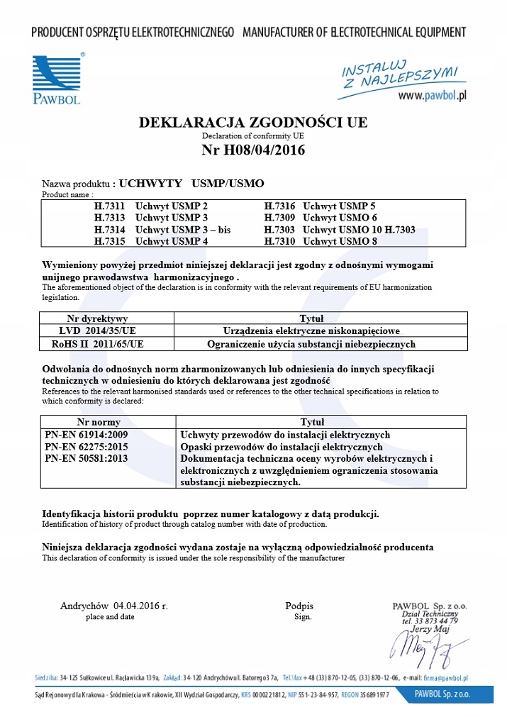 Uchwyt szybkiego montażu USMO 10 YDY 3×2,5 H.7303 PAWBOL