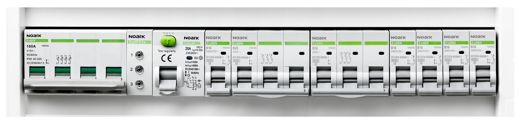 Zależne od napięcia wyłączniki różnicowoprądowe z zabezpieczeniem przeciążeniowym Ex9NLE zajmują tylko 1 moduł, co przekłada się na oszczędność miejsca w obudowie w porównaniu do klasycznych wyłączników różnicowoprądowych z zabezpieczeniem przeciążeniowym. Bazują one na wyzwalaczu elektronicznymco daje dokładniejszy pomiar prądu różnicowego. W urządzeniach tych nie występuje zjawisko magnesowania wyzwalacza, dzięki czemu nie ma obowiązku testowania ich okresowo, muszą być one jednak wykonywane regularnie. Lokalne prawo i przepisy mogą wymagać okresowego testowania oraz użytkowania urządzenia.Dla serii Ex9NLE testy zalecane są co 6 miesięcy w przypadku warunków normalnych oraz co miesiąc w przypadku warunków trudnych.