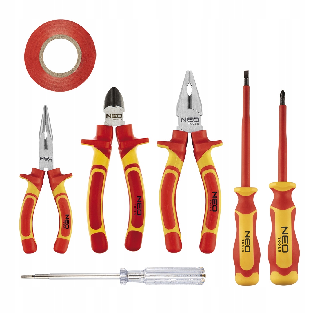 Zestaw narzędzi 1000V NEO (nr ref. 01-237) zawiera 7 elementów: w tym wkrętaki i szczypce. Atestowane do pracy pod napięciem do 1000 V. Groty wkrętaków wykonane z wyjątkowo wytrzymałej stali S2. Szczęki szczypiec odkuwane ze stali chromowo-wanadowej. Dwumateriałowe, ergonomiczne uchwyty podnoszą komfort pracy. Marka NEO spełnia oczekiwania profesjonalistów.