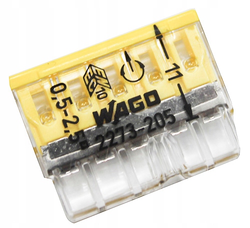 Przezroczysta obudowa złączki do puszek instalacyjnych gwarantuje bezpieczne i bezbłędne podłączanie przewodów jednodrutowych.Złączki do puszek instalacyjnych COMPACT z serii 2273 są o ponad 50% mniejsze niż złączki „WAGO” z serii 273. Istnieje możliwość tworzenia dowolnych kombinacji przewodów o przekrojach od 0,5 do 2,5 mm², prąd nominalny do 24 A i wyraźne rozróżnienie kolorystyczne ułatwiające szybką identyfikację – wszystko to stwarza doskonałe warunki do tworzenia instalacji. Przezroczysta obudowa umożliwia kontrolę wzrokową prawidłowego ułożenia przewodów. Wizjer do kontroli ochrony przed dotykiem pozwala sprawdzić, czy z przewody zostały prawidłowo odizolowane. Otwory pomiarowe są przystosowane do wszystkich dostępnych w handlu końcówek pomiarowych.