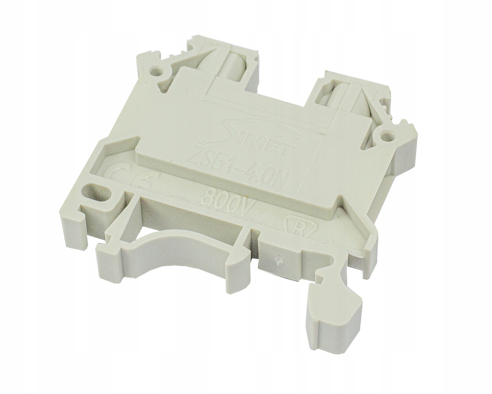 Złączka szynowa uniwersalna marki SIMET. Model przeznaczony o łączenia przewodów miedzianych i aluminiowych o przekroju 4 mm2. Wykonana jest z bezpiecznego, niepalnego tworzywa, a sam zacisk wypełniony jest przewodzącą pastą antykorozyjną. Takie połączenie materiałów pozwala na wykonanie solidnego i pewnego połączenia przewodów w rozdzielnicy.